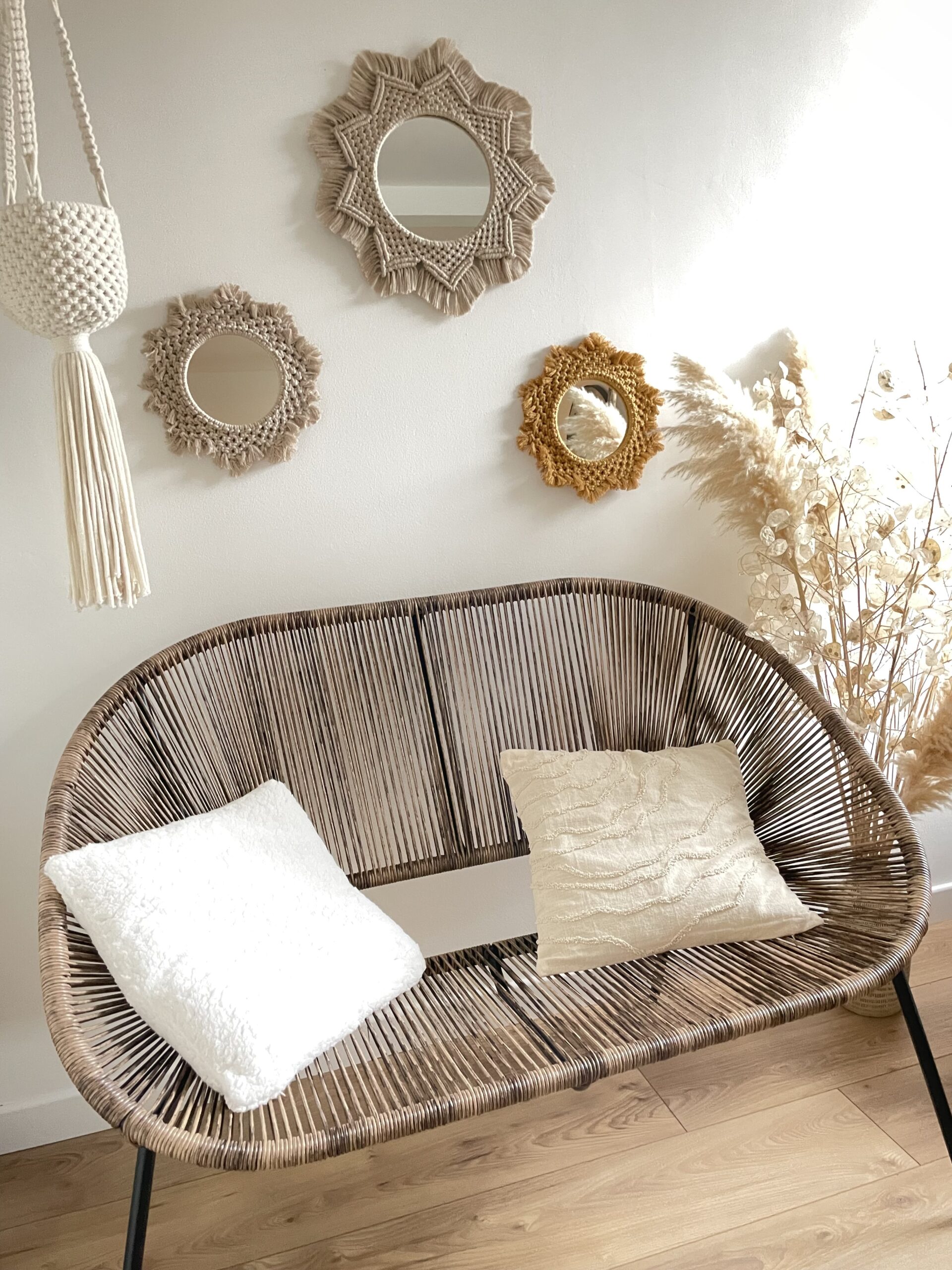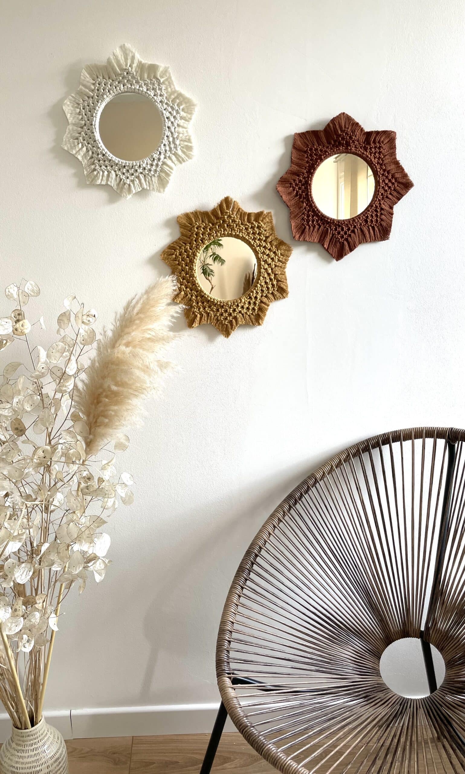 Décoration murale miroir macramé bohème