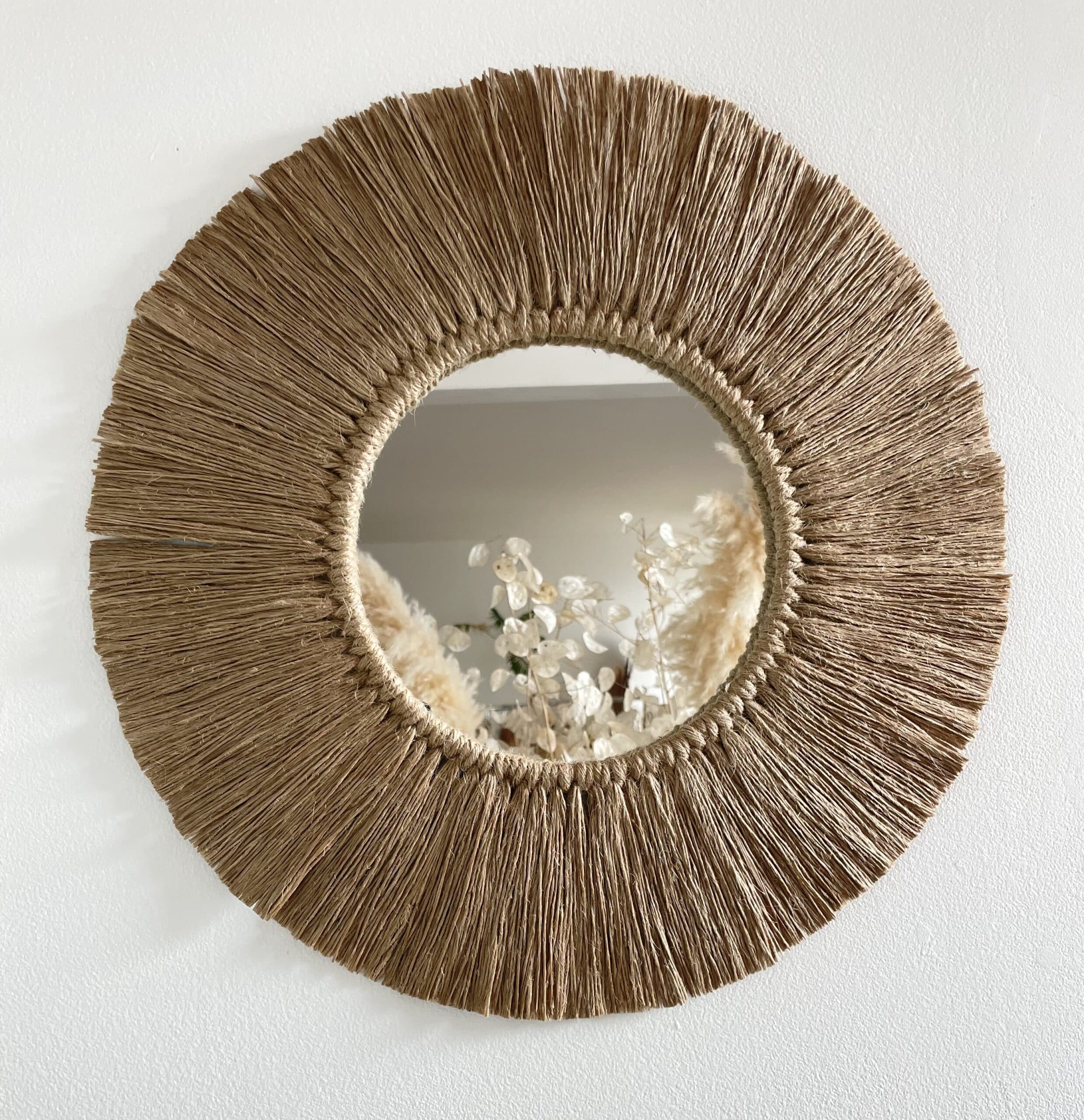 Idéal pour les intérieurs au style bohème, naturel ou écologique, ce miroir est une véritable œuvre d’art qui apportera du charme et de la chaleur à n’importe quelle pièce. Que ce soit dans une entrée, un salon ou une chambre, il illumine l’espace tout en mettant en valeur un savoir-faire artisanal respectueux de l’environnement. Son allure intemporelle en fait un choix parfait pour sublimer votre maison ou offrir un cadeau unique et original.
